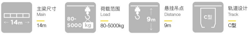 軌道、主梁表面的噴塑層可延長產(chǎn)品的使用壽命,降低維護(hù)成本。 此外,軌道吊掛點距離長達(dá)9m,可最大程度地減少鋼結(jié)構(gòu)的用量,從而降低起重機(jī)的整體成本。同時起重機(jī)采用模塊式設(shè)計,使您能在企業(yè)需求改變時有針對性地調(diào)整起重機(jī)系統(tǒng),因而投資該產(chǎn)品對您而言將是明智之舉。